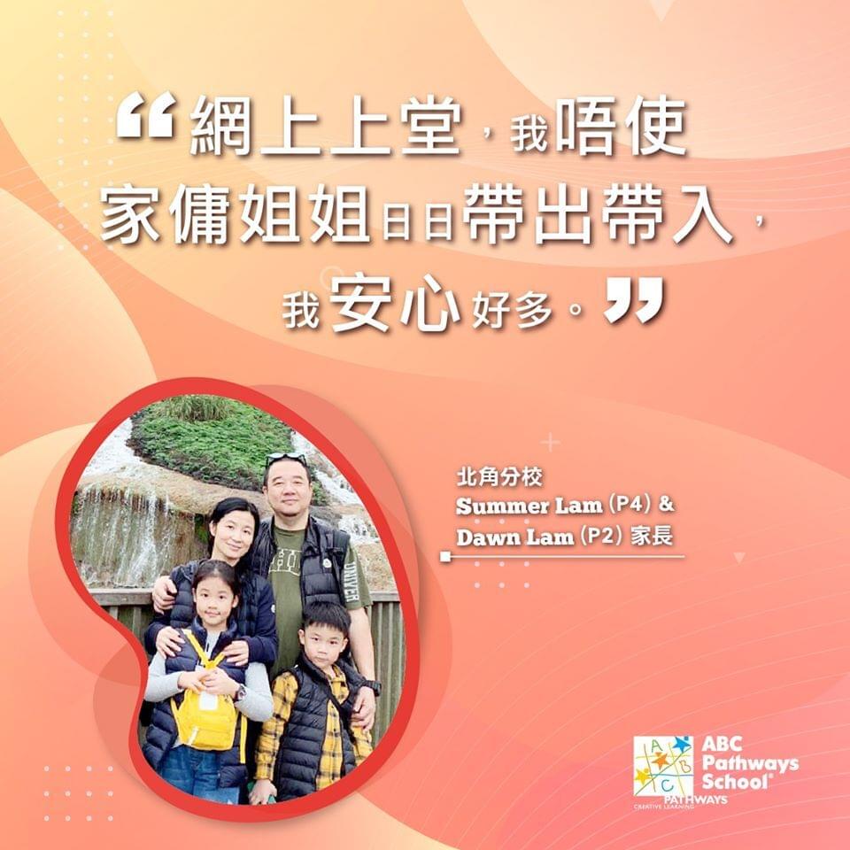「生活繁忙,我未必能日日帶仔女返放學,決定參加ABC網上課堂。在家上堂,我較安心,避免要家傭姐姐帶著小朋友出出入入。」